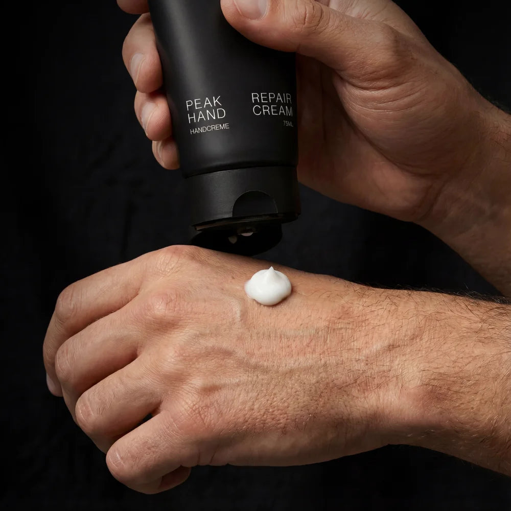 Peak Repair Hand Cream is not a classic skincare product, but a highly effective repair formula . which was specially developed for stressed men's hands. While many conventional hand creams rely primarily on oil, our formula works deep into the skin – without a film or a slippery surface.